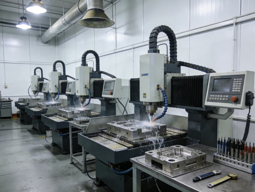 白色墻面采用工業(yè)級潔凈涂層,無縫拼接搭配圓弧陰陽角設(shè)計,杜絕積塵死角,減少粉塵對模具精度的影響。車間劃分加工區(qū)、檢測區(qū)、調(diào)試區(qū)等功能區(qū)域,布局科學合理,加工區(qū)增設(shè)阻尼減震墊層降低設(shè)備振動干擾,檢測區(qū)預(yù)留精密儀器安裝位與恒溫調(diào)控接口,各區(qū)域均配備標準化管線預(yù)埋與設(shè)備固定點位,全方位保障模具制造的精準性與穩(wěn)定性。