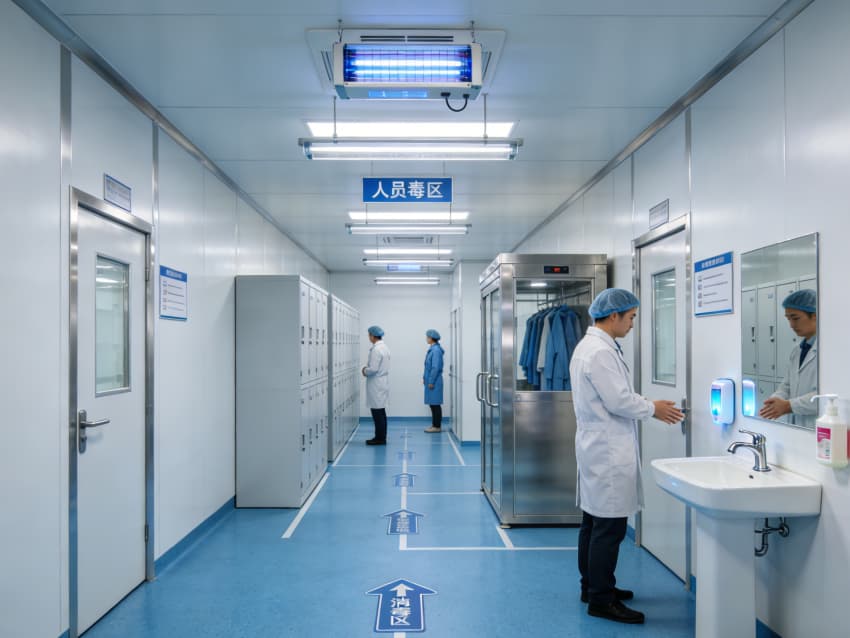 白色墻面采用食品級(jí)潔凈抗菌涂層,推行無縫拼接與高精度找直工藝,陰陽角采用R50圓弧倒角設(shè)計(jì),徹底消除清潔死角,潔凈度穩(wěn)定達(dá)到Class 7級(jí)標(biāo)準(zhǔn)。廠房科學(xué)劃分無菌裝配區(qū)、滅菌區(qū)、檢測區(qū)等核心區(qū)域,各區(qū)域配備獨(dú)立層流凈化與負(fù)壓防護(hù)系統(tǒng),裝配區(qū)預(yù)留恒溫恒濕調(diào)控接口,滅菌區(qū)設(shè)置專用物料傳遞通道,全方位保障生產(chǎn)全流程的無菌性與合規(guī)性,為高品質(zhì)無菌醫(yī)療器械生產(chǎn)筑牢環(huán)境基礎(chǔ)。
