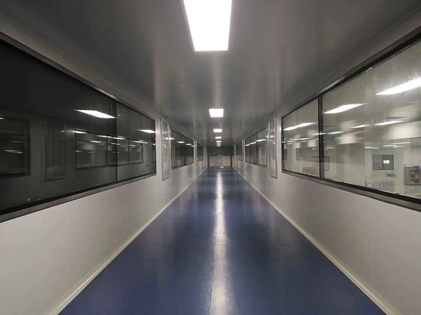 2.目前國內保健品GMP凈化車間較多采用夾心彩鋼板結構。安裝時,墻面采用企口型,而吊頂采用普通型彩鋼板,使用新型“單、雙”密封的夾心彩鋼板配套鋁型材。緊固件及管線在板材內暗裝,這種方法使車間內壁及吊頂看不到螺絲和鉚釘,同時使門窗密閉程度提高,并在保健品凈化車間內使用有聯鎖和紫外燈裝置的傳遞窗(柜)。它能保持室內正壓穩定,防止污染,達到GMP要求。